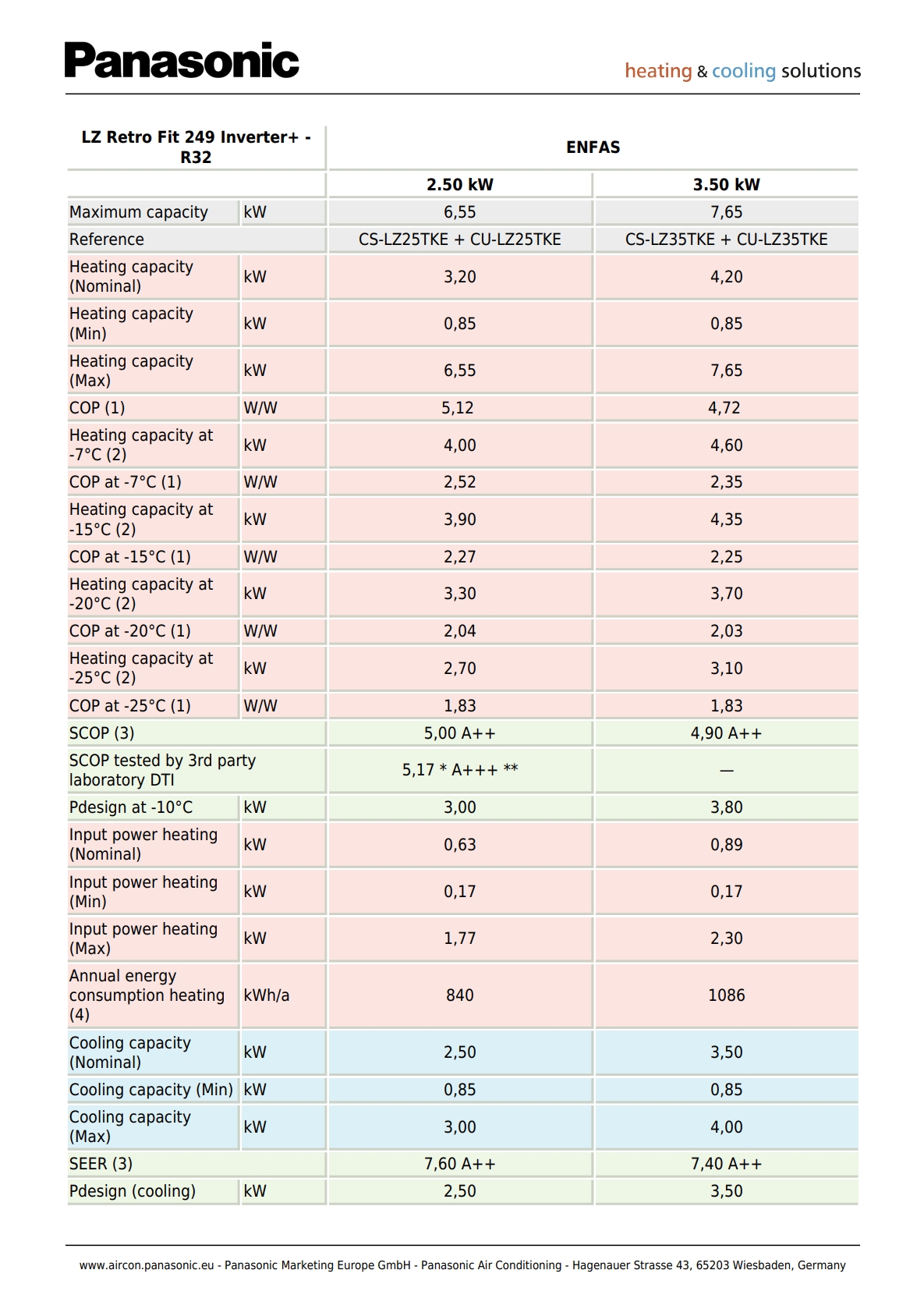 Panasonic LZ25TKE & LZ35TKE Luftvärmepump